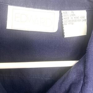 Edward Linen Button Up Vintage Top XL Navy Blue Short Sleeves 100% Linen Office