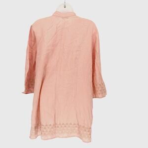 Edward Linen Tunic Top Blouse Shirt Plus Size 2X Pink Eyelet 3/4 Sleeve Button