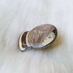 Edward Scissorhands in a snowglobe with pretty AB glitter hard enamel & metal tack back lapel pin.