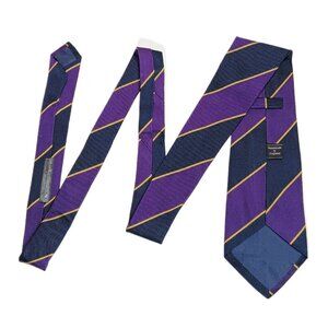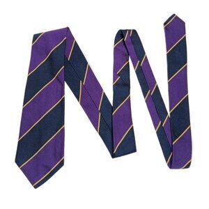 Edward Sexton Silk Repp Tie Men’s 59” Navy Purple Woven Stripe Saville Row Wide