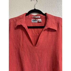 Edward Woman Irish Linen Tunic Blouse Plus Size 1X Coral Pink Popover Boho