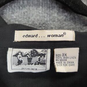 Edward Womens Shirt Size 2X Black Vintage 100% Irish Linen Button Front Coastal