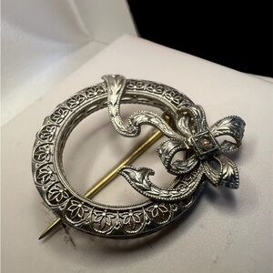 • Design: Wreath/circle form with delicate filigree and a graceful bow