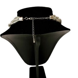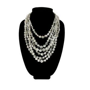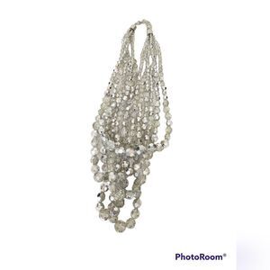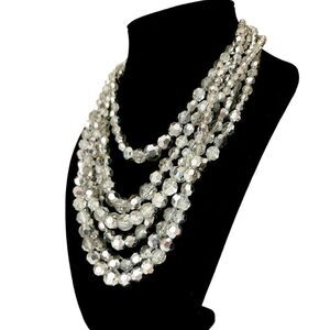 Edwardian 6 strand silver crystal dramatic bib necklace