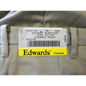 Edwards Slacks 38 Khaki Tan Wrinkle Resistant Pleated Unhemmed 100% Cotton NEW