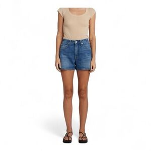 The AMBER SHORT is a mid length, high waist short that sits at the hip with a slightly wider leg for a relaxed fit.