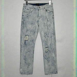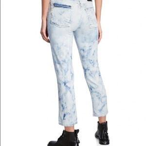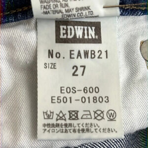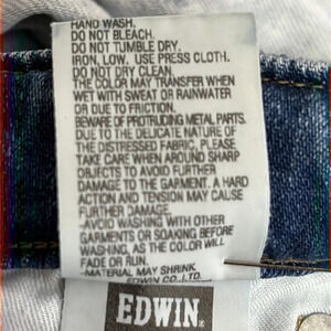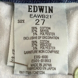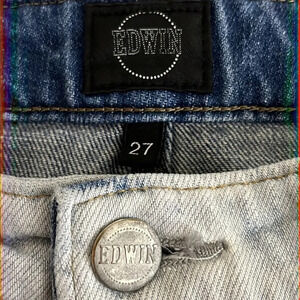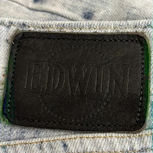 Edwin Beth Boyfriend Ankle Distressed Acid Washed Jeans in a size 27. Excellent preowned condition. Extremely soft denim. Boyfriend style, ankle length, distressing, made in Japan, acid washed, leather waste patch. Approximate measurements: 14 1/2 inch waist, 10 inch rise, 26 1/2 inch inseam.