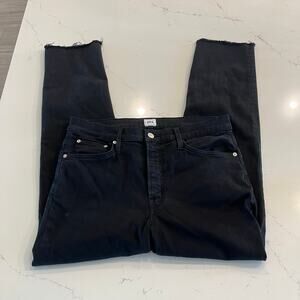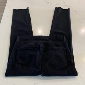 In great used condition. No holes or stains. Black. Raw hem. Zipper fly with a button. High waisted. 28" inseam. Women's size 30.