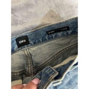Edwin CAI Short Womens Size 24 Corsica Blue Denim Frayed Hem 7" NWT
