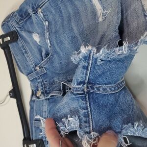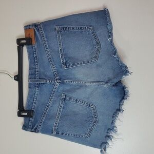 Womens denim cut off shorts size 31. All cotton no stretch. Little distressed spots. Highrise. Good pre-owned condition. Approximate measurements provided. Festival. Concert. Vacation. Streetwear. Beach. Streetwear. Edgy. Y2k.