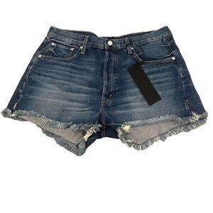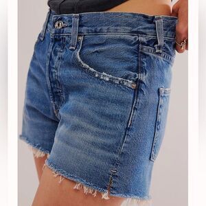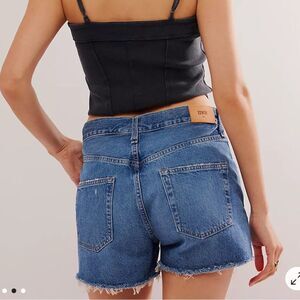 Edwin Cai Mad Love Anthropology Cut Off Raw Hem Medium Wash Denim Jean Shorts