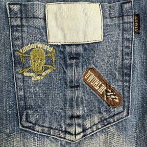 "Edwin International by Infiniti 1853Q". Features unique Underworld skull embroidery and Underworld patch on back pocket