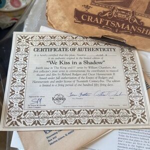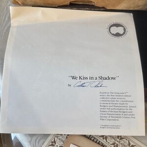 Edwin M Knowles Collector Plate with Certificate. “We Kiss In A Shadow” 1985