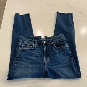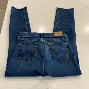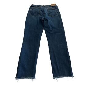 In good used condition. No holes or stains. Raw hem. Zipper fly with a button. 26.5" inseam. Slim Fit. Mid rise. Women's size 26.