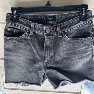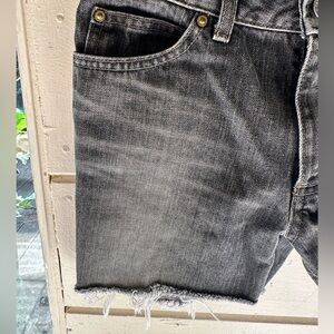 Stylish black jean shorts. Frayed hem. Classic five-pocket design. Perfect for casual wear.Size 28