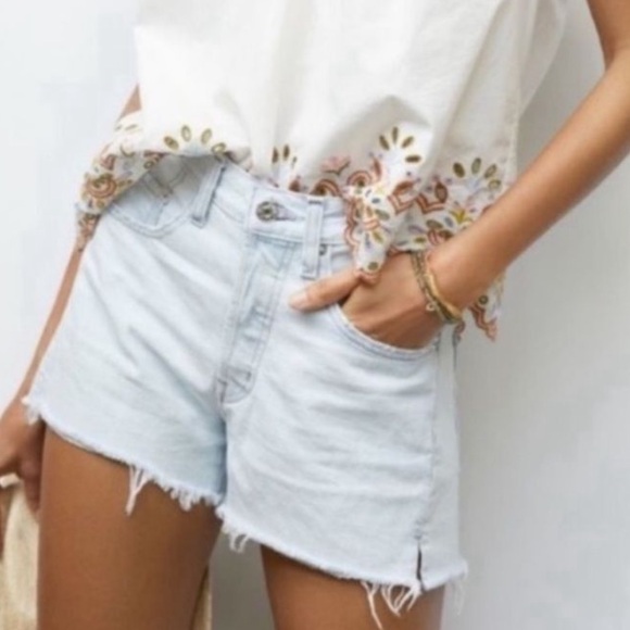 New with no tags EDWIN Cai Denim Cut Off Jeans Shorts Size 28 in Light Daydream Wash
