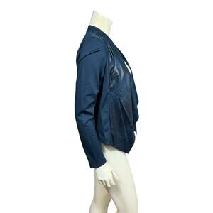 Design: Open-front draped collar with a relaxed, tailored fit.