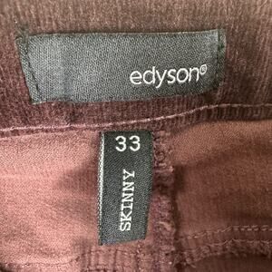 Edyson Dark Burgundy Skinny High Rise Cotton Corduroy Pants Pockets Size 33