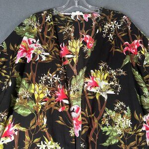 Ee:Some Womens S/M Black Floral Kimono Cardigan Jacket Lightweight Polyester