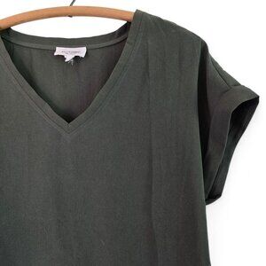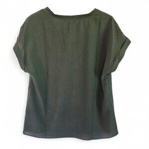 Ee:Some Womens V-Neck Blouse Olive Green V-Neck Cuffed Sleeve Small