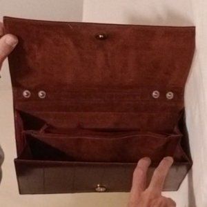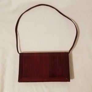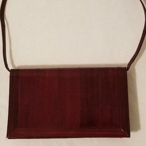 Eel Skin Burgundy Clutch Purse Suede Leather Lining and Snap-on Shoulder Strap