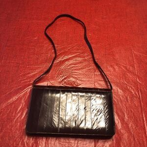 Eel Skin Dark Brown Shoulder Bag. EUC. Suede interior. Removable shoulder strap via snap. One inside compartment. One inside zipper pocket. Measures 11”x6.5” with 16.5” shoulder drop.