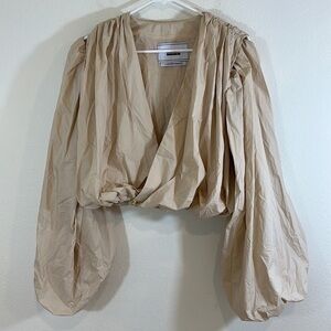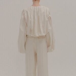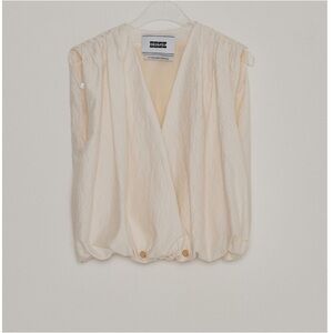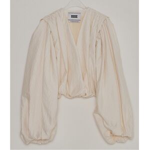 Eenk POUPEE Shirred Collarless Ivory Jacket with detachable sleeves