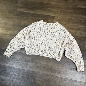 Ee:some Confetti Cable Knit Sweater in size small medium. Cropped boxy fit. Small snags ( see last photo left and right of the tape measure )
