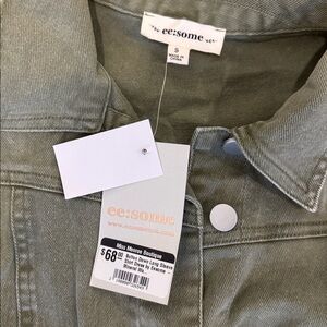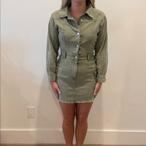 Chic olive dress with button-down design. Long sleeves and tailored fit.