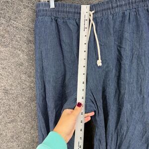 Ee:some Pants Women L Large Blue Striped High Rise Drawstring Wide Leg Cotton