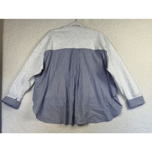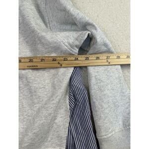 Approximate measurements: Pit to pit: 23 in, Length (shoulder to hem): 28.5 in (longest point, including shirt tail hem).