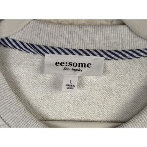 Eesome Sweater Womens Large Gray Pink Bow Pullover Striped Contrast Coquette