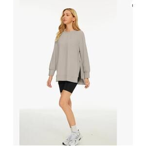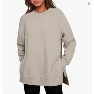 Efan Womens Oversized Sweatshirts CrewNeck Pullover Tunic Longer Length Side Zip Beige XL