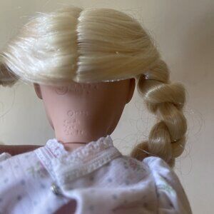 This vintage Effanbee doll artist by linda lee Sutton from 1992, modeled after the classic fairytale of the Princess and the Pea, is ready to be treasured by a new owner. The doll features blonde hair of varying styles, a light complexion, and striking blue eyes. The set includes the doll and a stand, perfect for display or play.