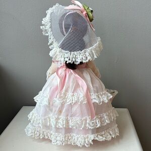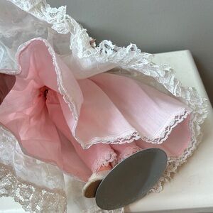 This elegant doll features a beautiful pink dress adorned with delicate lace. Perfect for imaginative play and display.