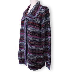 Effeci Knit Cardigan Plus Size 2X Black & Purple Variegated Stripe Phoebe Buffet