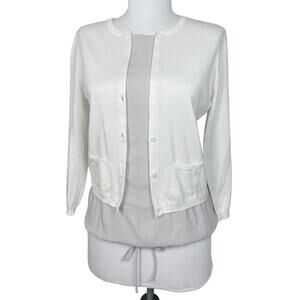 Effetto F sz XS US 2 Cashmere & Silk Sweater 3/4 Sleeves Ivory / Taupe Italy