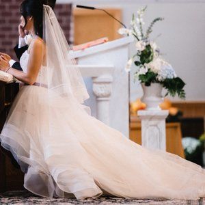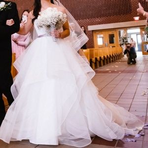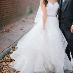 Selling the Watters lace bustier and the matching double horse hair veil separately. I would highly recommend buying the 3 pieces together as they look so beautiful together!!