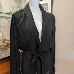 Effortless Chic: Black Flowy Tie-Front Cinched Waist Jacket/Wrap - Size Medium