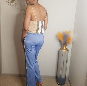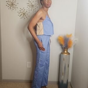 This chic two-piece set features a lightweight spaghetti strap cami top paired with flowing wide-leg pants that elongate your silhouette and provide all-day comfort. The top offers a clean, minimal front with a stunning contrast detail on the back, giving you that unexpected “wow” moment when you turn around.