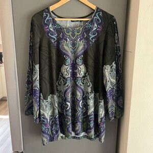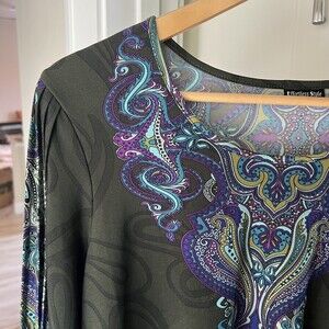 Effortless Style by Citiknits Women’s Top Green Long Sleeve Bell V-Neck Large