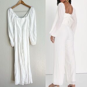 Effortlessly Adored White Balloon Sleeve Wide-Leg Jumpsuit