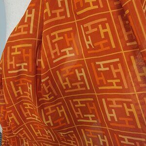 Effy Hematian Women's Scarf Orange Logo Animal Print Sheer Rectangular 68X27"