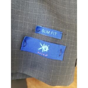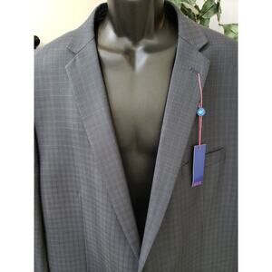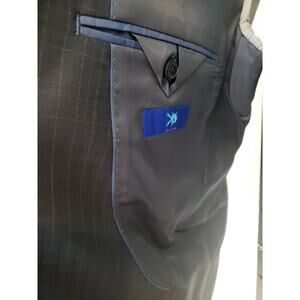 Egara Blazer Jacket Men 54L Navy Wool Check Single Breasted Notch Lapel Slim Fit