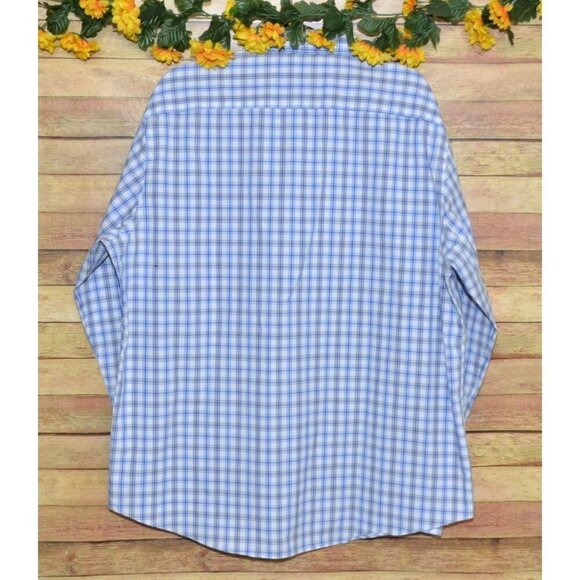 Egara Blue Plaid Men's Dress Shirt Size XXL Non Iron Contrast Cuffs Button Up