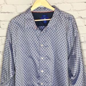 Size 3X Egara Blue Print Casual Button Up Long Sleeve Cotton Shirt