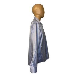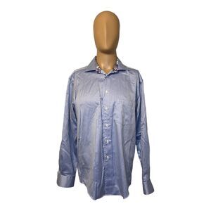 Egara Button Down Shirt Adult Mens Large Blue Stripe Non-Iron Contrast Cuff