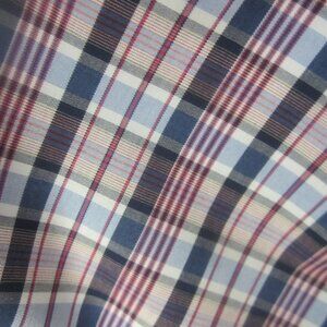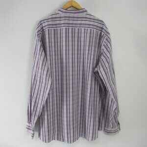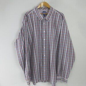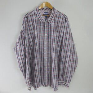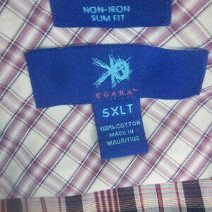 Egara Mens 5XLT Navy Blue Maroon Red White Plaid 100% Cotton LS Button Shirt