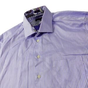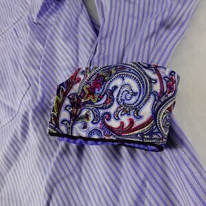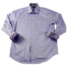 Egara Mens Blue Striped Flip Cuff Long Sleeve Button Up Shirt XL 17.5