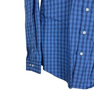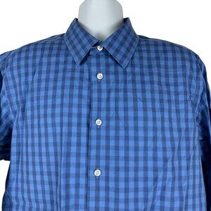 Egara Mens Non-Iron Blue Checkered Long Sleeve Shirt XL 100% Cotton